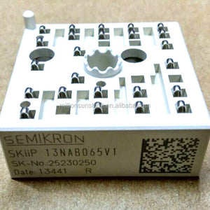 The SKIIP13NAB065V1 is a MiniSKiiP® 1 module that combines a three-phase bridge rectifier, brake chopper and three-phase bridge inverter in a single package. It is intended for use in motor drives, UPS systems, inverters and photovoltaic converters where an integrated power stage simplifies assembly and layout.